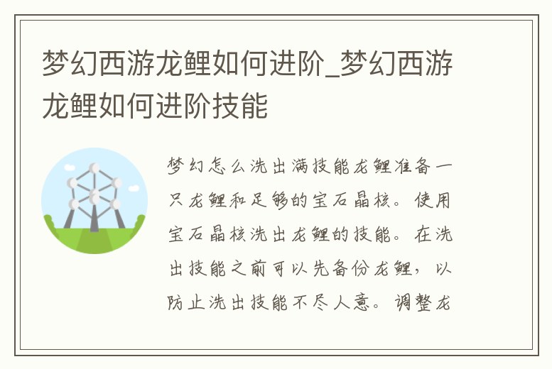 夢幻西游龍鯉如何進階_夢幻西游龍鯉如何進階技能