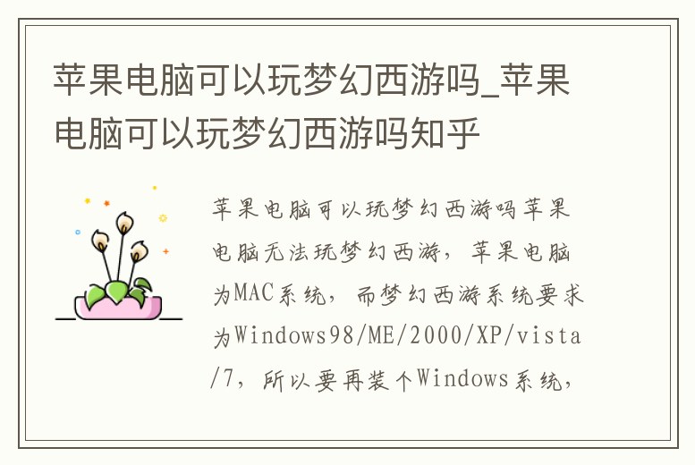 蘋果電腦可以玩夢幻西游嗎_蘋果電腦可以玩夢幻西游嗎知乎
