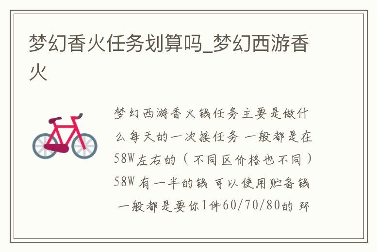 3、夢幻西游花香香任務一環可以得多少錢?一輪呢