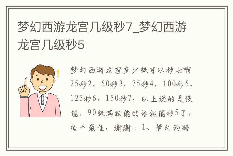 夢幻西游龍宮幾級秒7_夢幻西游龍宮幾級秒5