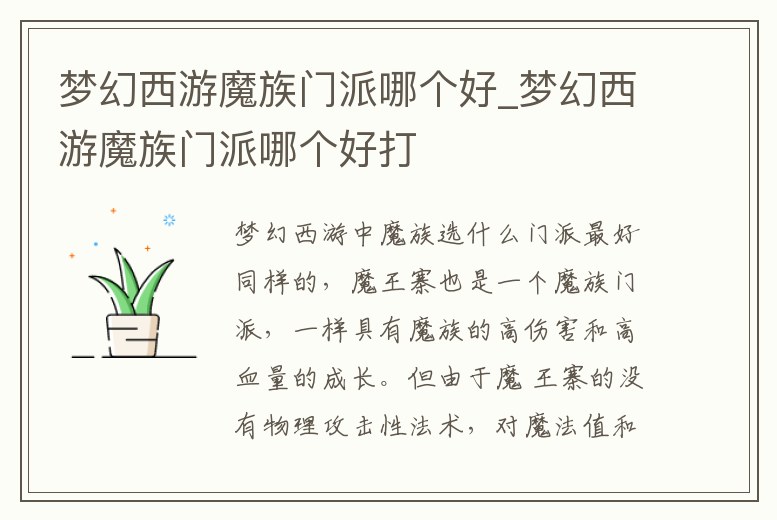 夢幻西游中魔族選什么門派最好