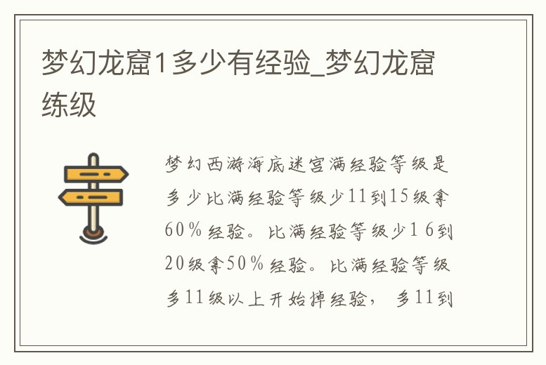 夢幻龍窟1多少有經驗_夢幻龍窟練級