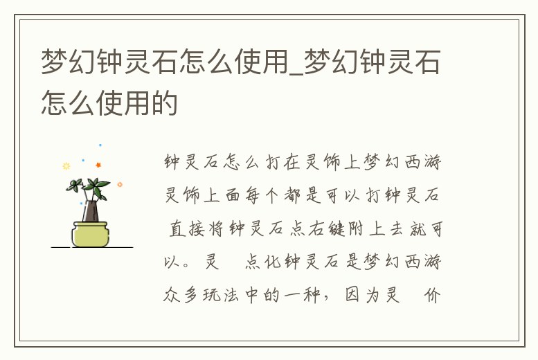 夢幻鐘靈石怎么使用_夢幻鐘靈石怎么使用的