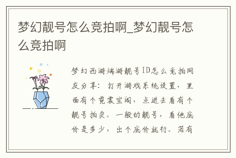 夢幻靚號怎么競拍啊_夢幻靚號怎么競拍啊