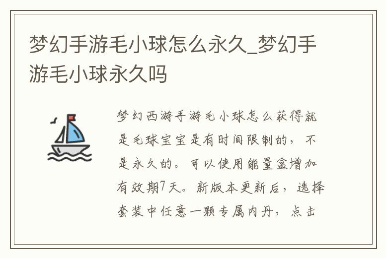 夢幻手游毛小球怎么永久_夢幻手游毛小球永久嗎