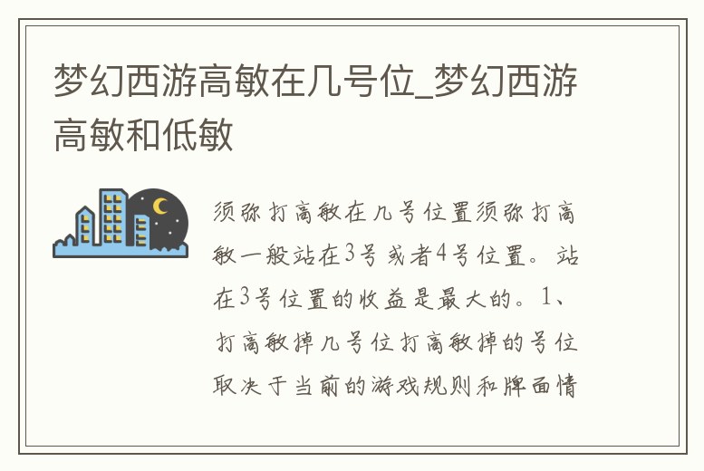 夢幻西游高敏在幾號位_夢幻西游高敏和低敏