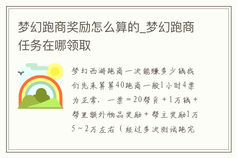 夢幻跑商獎勵怎么算的_夢幻跑商任務在哪領取