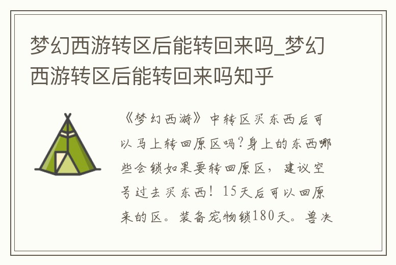 夢幻西游轉區后能轉回來嗎_夢幻西游轉區后能轉回來嗎知乎