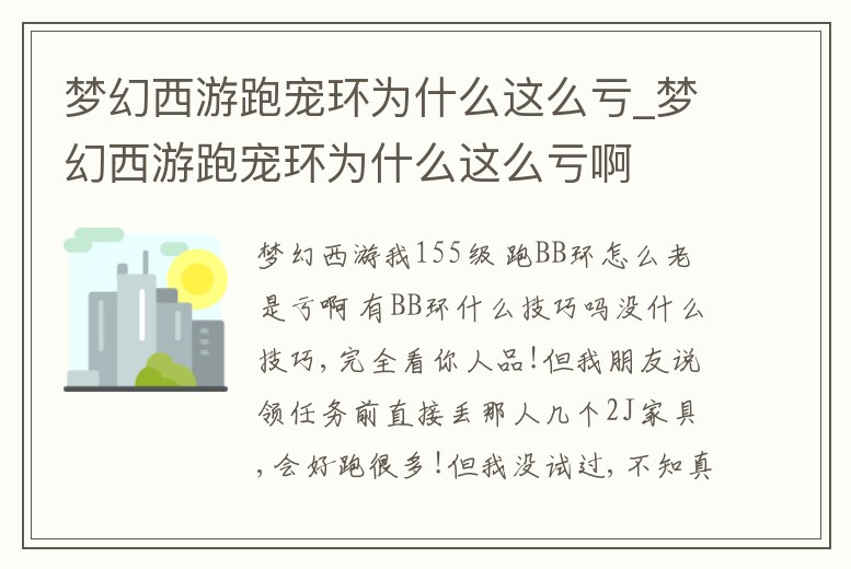 夢幻西游我155級 跑BB環怎么老是虧啊 有BB環什么技巧嗎