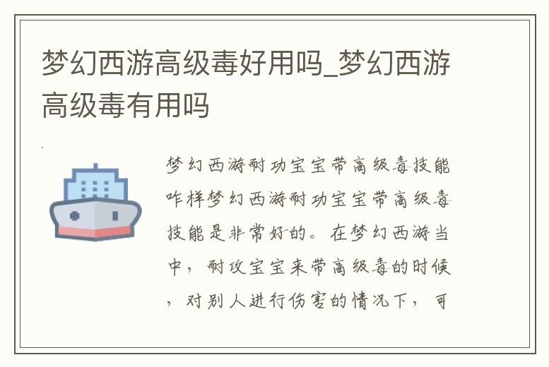 夢幻西游高級毒好用嗎_夢幻西游高級毒有用嗎