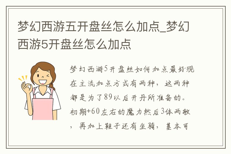 夢幻西游五開盤絲怎么加點_夢幻西游5開盤絲怎么加點