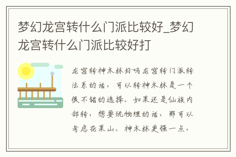 夢幻龍宮轉什么門派比較好_夢幻龍宮轉什么門派比較好打