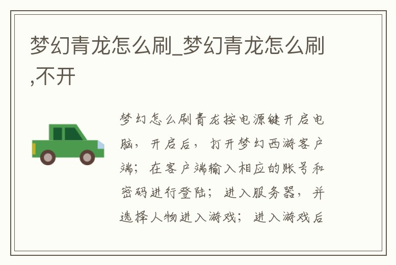 夢幻青龍怎么刷_夢幻青龍怎么刷,不開