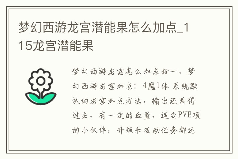 - 夢(mèng)幻西游龍宮潛能果怎么加點(diǎn)_115龍宮潛能果