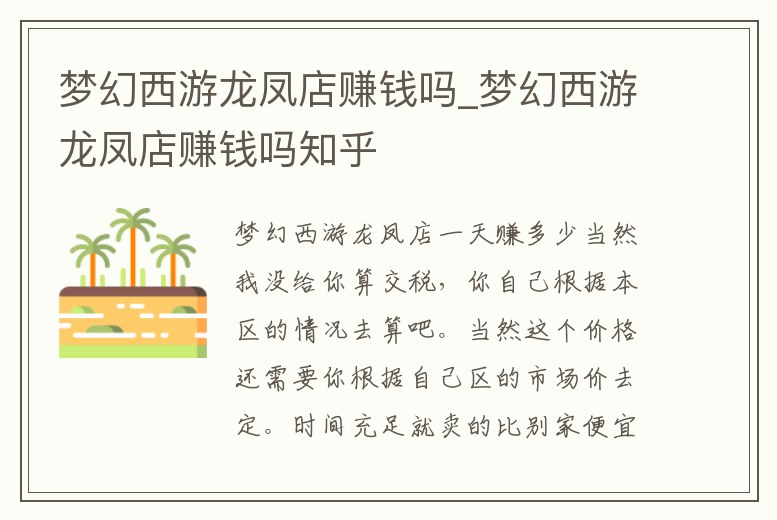 夢幻西游龍鳳店賺錢嗎_夢幻西游龍鳳店賺錢嗎知乎