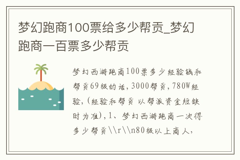 夢幻跑商100票給多少幫貢_夢幻跑商一百票多少幫貢