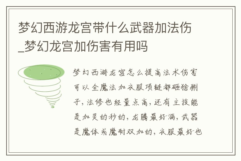 夢幻西游龍宮帶什么武器加法傷_夢幻龍宮加傷害有用嗎