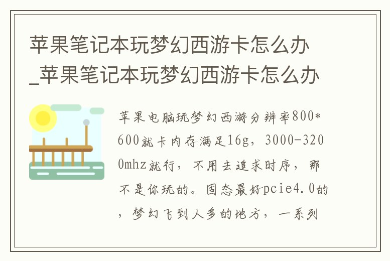 蘋果筆記本玩夢幻西游卡怎么辦_蘋果筆記本玩夢幻西游卡怎么辦呀