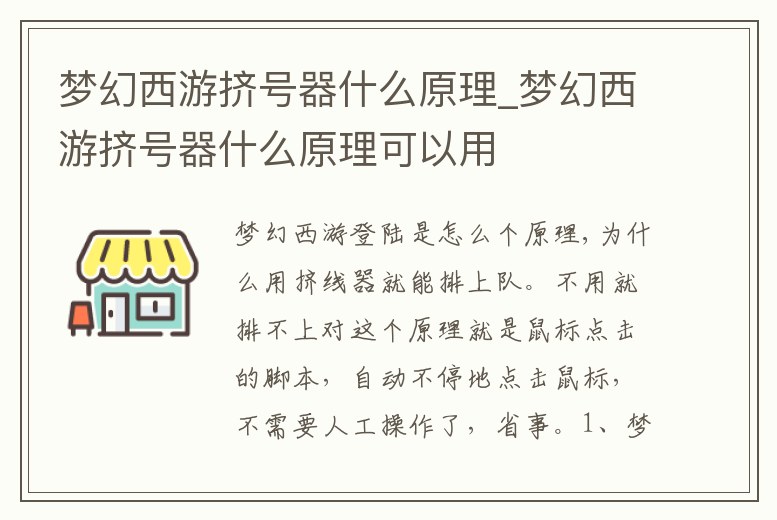 夢幻西游擠號器什么原理_夢幻西游擠號器什么原理可以用