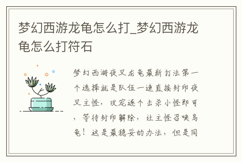 - 夢(mèng)幻西游龍龜怎么打_夢(mèng)幻西游龍龜怎么打符石