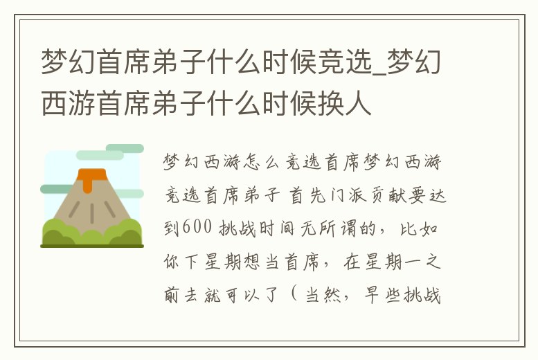 夢幻首席弟子什么時候競選_夢幻西游首席弟子什么時候換人