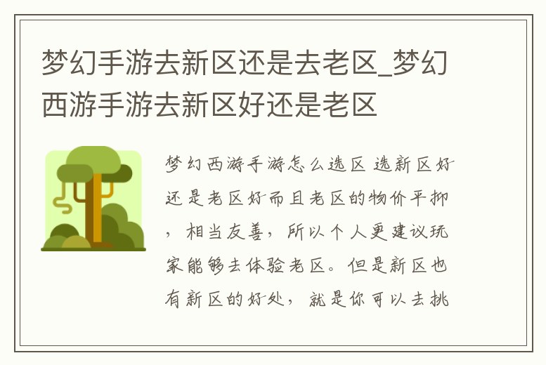 夢幻手游去新區還是去老區_夢幻西游手游去新區好還是老區
