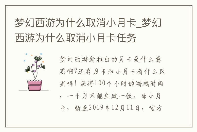 夢幻西游為什么取消小月卡_夢幻西游為什么取消小月卡任務