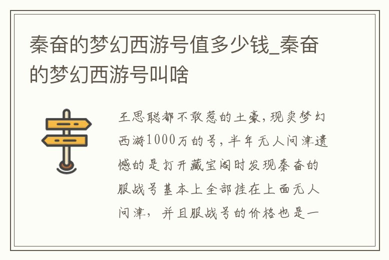 秦奮的夢幻西游號值多少錢_秦奮的夢幻西游號叫啥