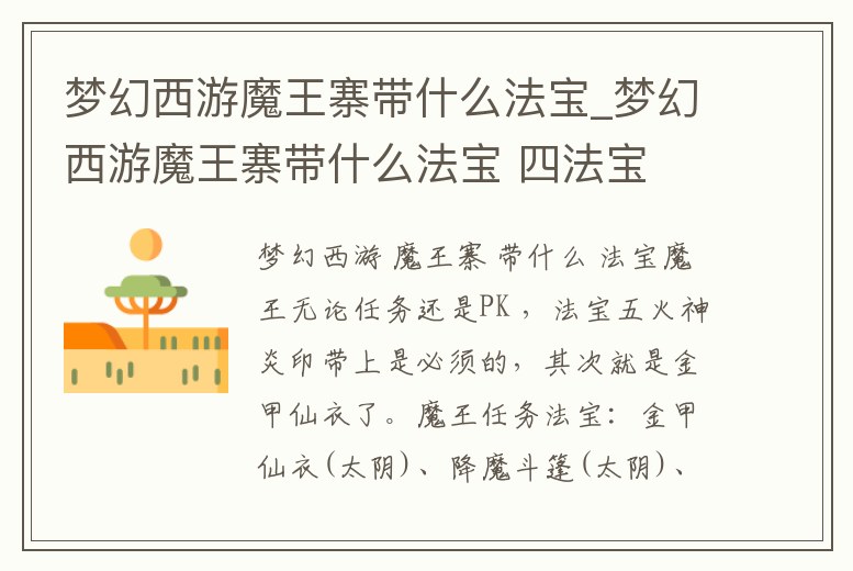 夢幻西游魔王寨帶什么法寶_夢幻西游魔王寨帶什么法寶 四法寶