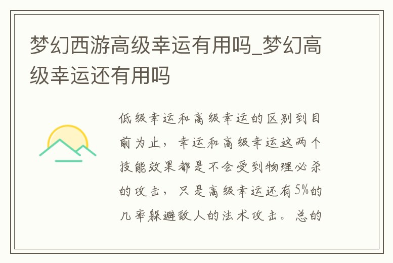 - 夢幻西游高級幸運(yùn)有用嗎_夢幻高級幸運(yùn)還有用嗎
