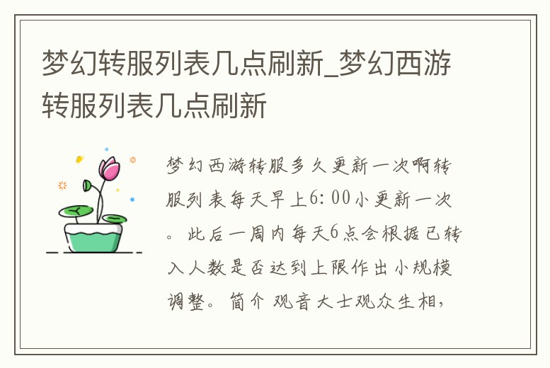 夢幻轉服列表幾點刷新_夢幻西游轉服列表幾點刷新