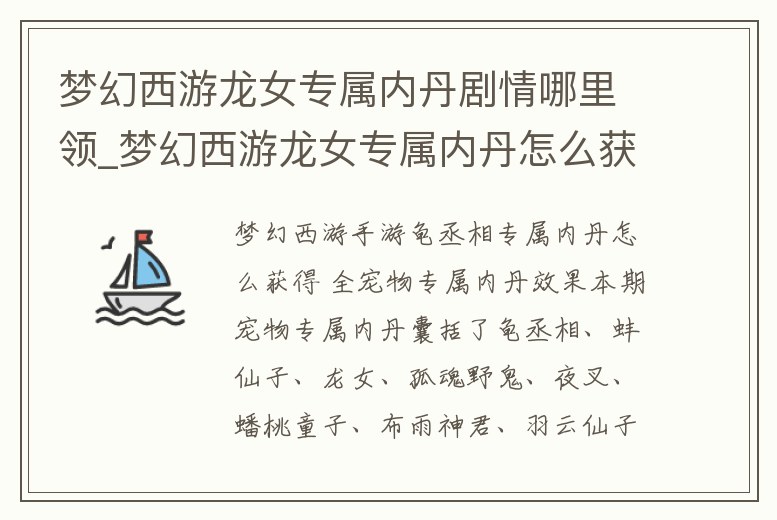 夢幻西游龍女專屬內丹劇情哪里領_夢幻西游龍女專屬內丹怎么獲得