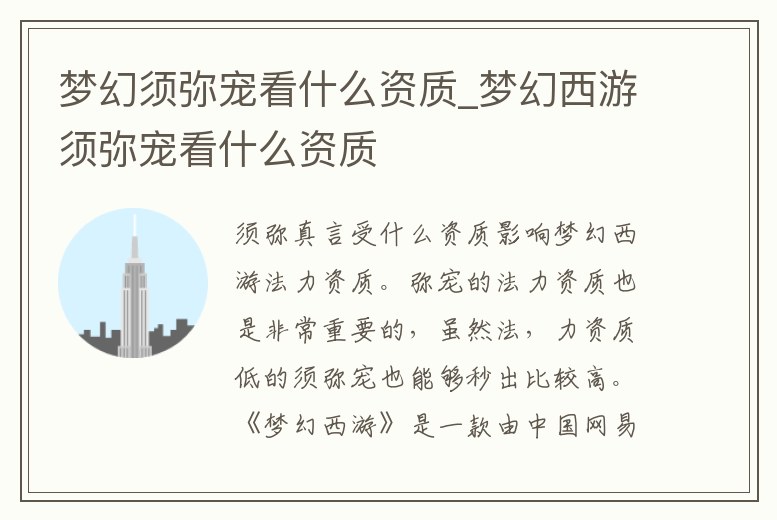 夢幻須彌寵看什么資質_夢幻西游須彌寵看什么資質