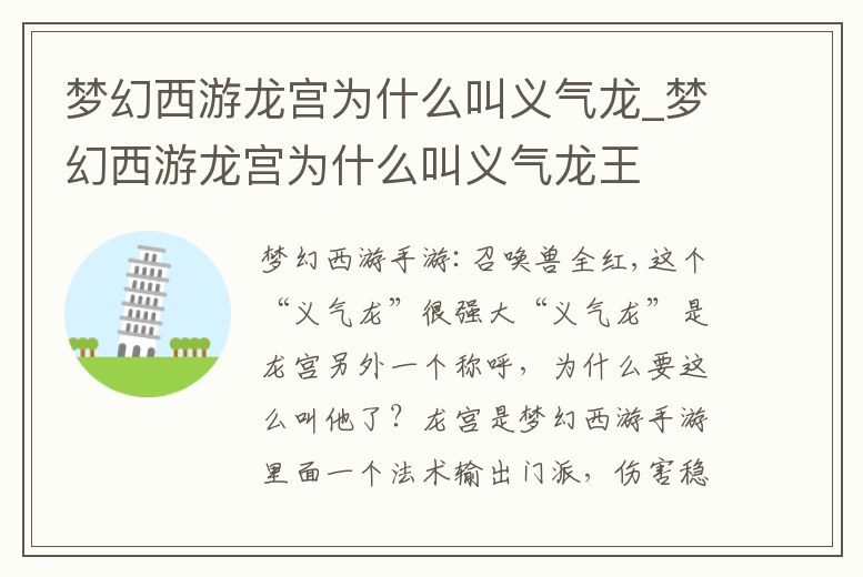 夢幻西游龍宮為什么叫義氣龍_夢幻西游龍宮為什么叫義氣龍王