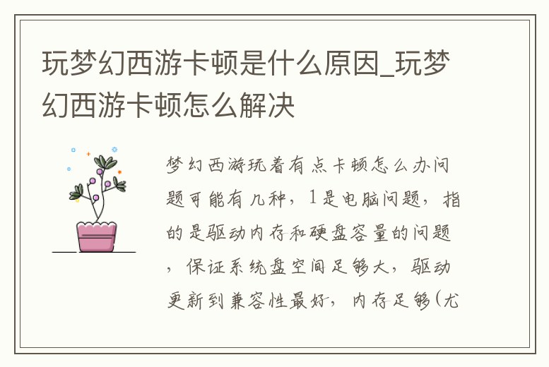 玩夢幻西游卡頓是什么原因_玩夢幻西游卡頓怎么解決