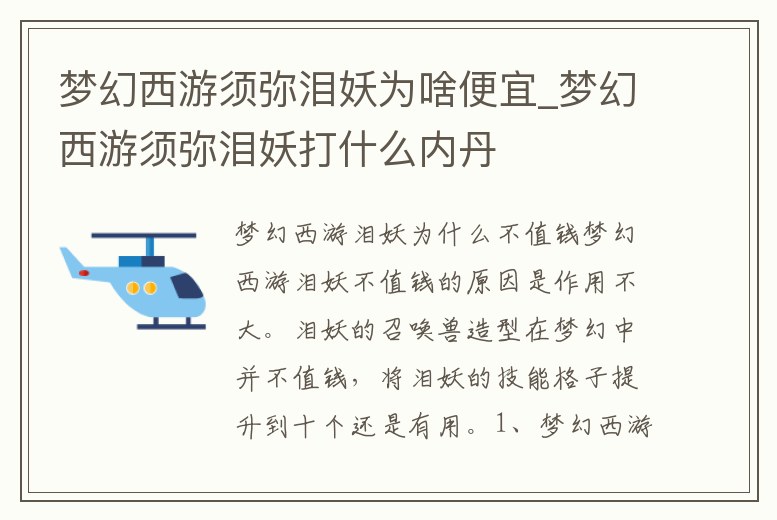 夢幻西游須彌淚妖為啥便宜_夢幻西游須彌淚妖打什么內丹