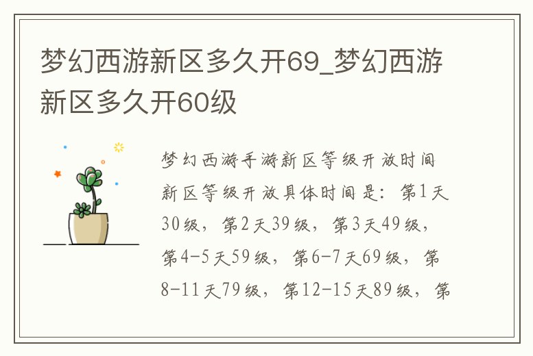 夢幻西游新區多久開69_夢幻西游新區多久開60級