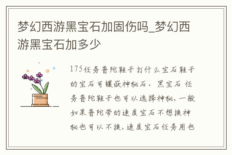 夢幻西游黑寶石加固傷嗎_夢幻西游黑寶石加多少