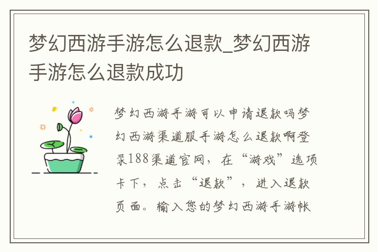 夢幻西游手游可以申請退款嗎夢幻西游渠道服手游怎么退款啊