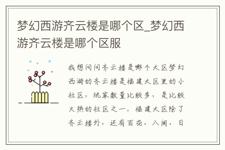 夢幻西游齊云樓是哪個區_夢幻西游齊云樓是哪個區服