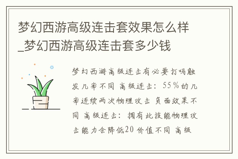夢幻西游高級連擊套效果怎么樣_夢幻西游高級連擊套多少錢