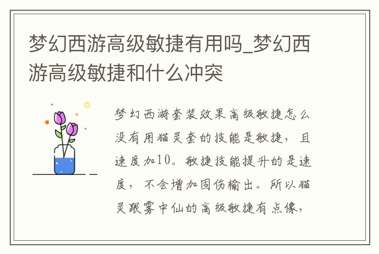 夢幻西游高級敏捷有用嗎_夢幻西游高級敏捷和什么沖突