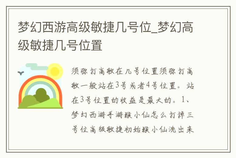夢幻西游高級敏捷幾號位_夢幻高級敏捷幾號位置