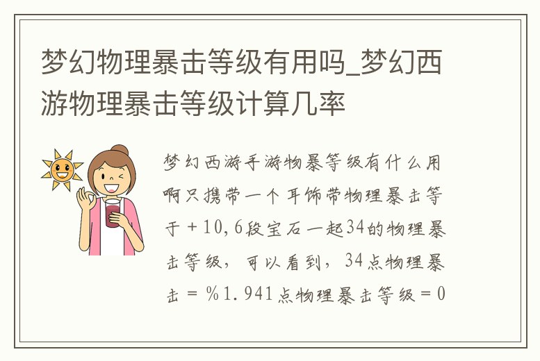 夢幻物理暴擊等級有用嗎_夢幻西游物理暴擊等級計算幾率
