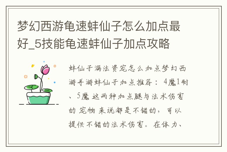 夢幻西游龜速蚌仙子怎么加點最好_5技能龜速蚌仙子加點攻略