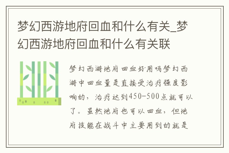 - 夢(mèng)幻西游地府回血和什么有關(guān)_夢(mèng)幻西游地府回血和什么有關(guān)聯(lián)