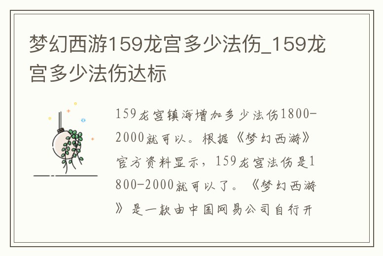 夢幻西游159龍宮多少法傷_159龍宮多少法傷達標