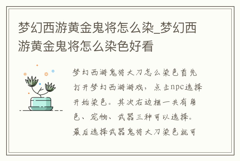 - 夢(mèng)幻西游黃金鬼將怎么染_夢(mèng)幻西游黃金鬼將怎么染色好看