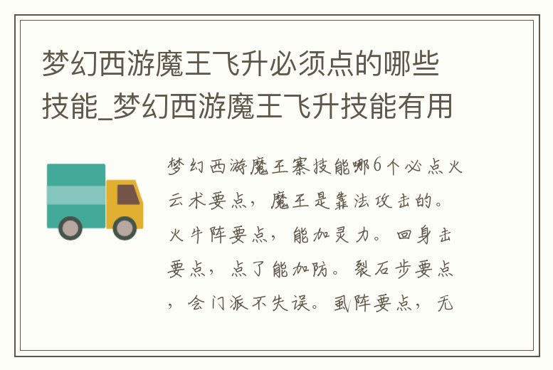 夢幻西游魔王飛升必須點的哪些技能_夢幻西游魔王飛升技能有用嗎