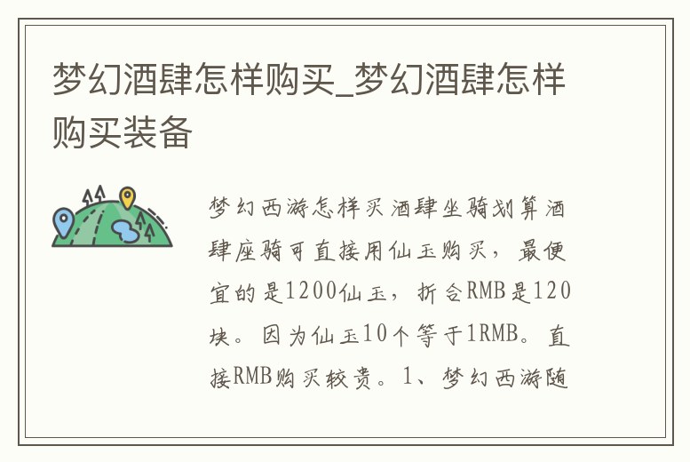 酒肆座騎可直接用仙玉購買,最便宜的是1200仙玉,折合RMB是120塊。因為仙玉10個等于1RMB。直接RMB購買較貴。